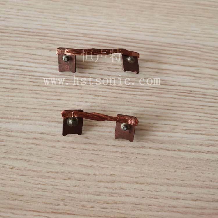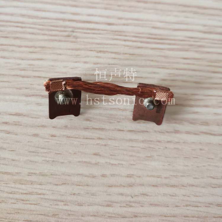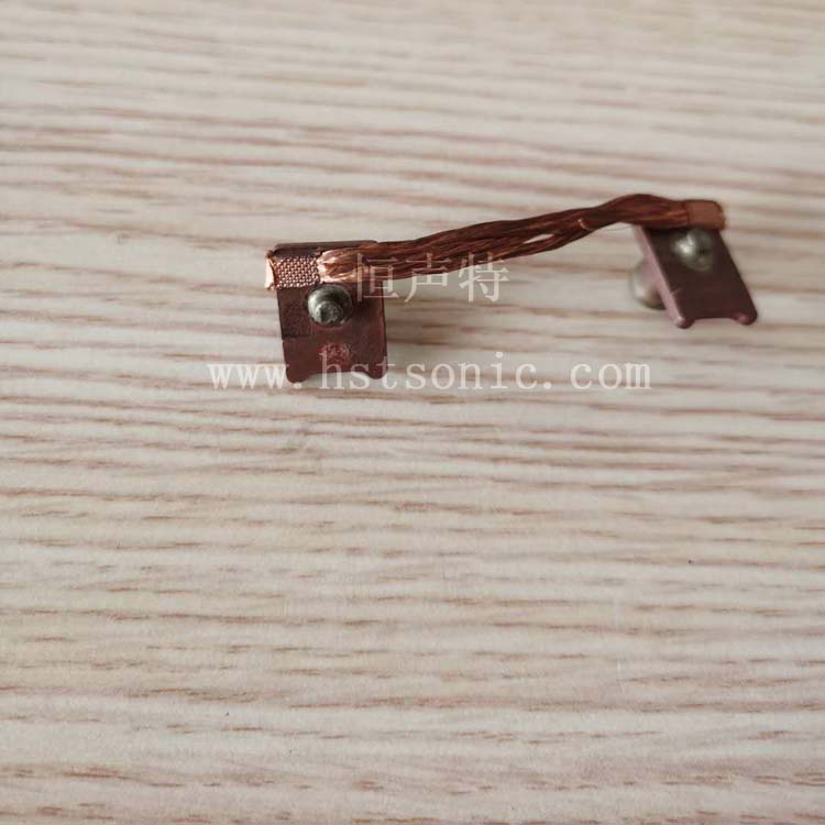 兩個(gè)銅編織線與銅端子超聲波金屬點(diǎn)焊機(jī)焊接樣品如下: