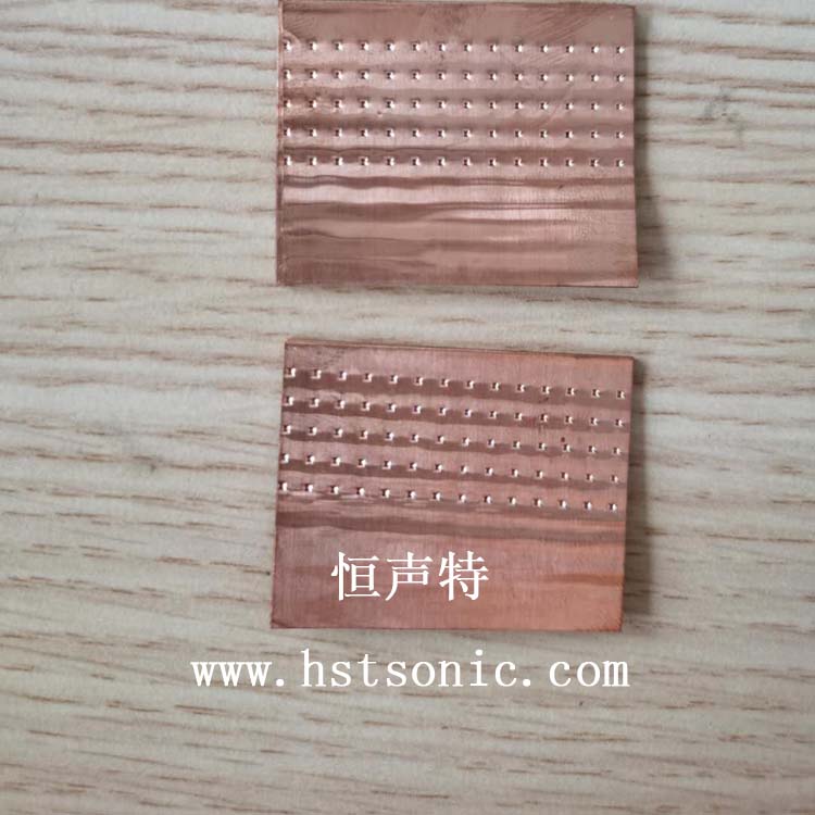 超聲波多層銅片超聲波點(diǎn)焊機(jī)焊接是銅片與銅片壓合而成,正面齒痕清晰,反面齒痕清晰無(wú)變形。