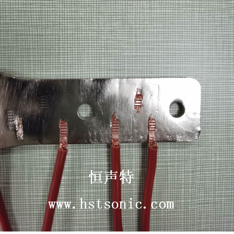 多層銅箔與銅線焊接超聲波金屬點(diǎn)焊機(jī)焊接效果牢固,表面痕跡齒形均勻,無毛刺。