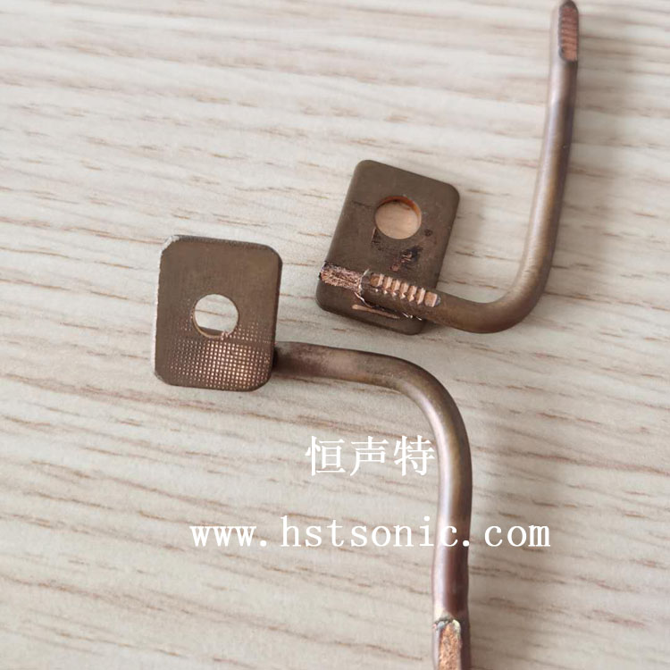 銅柱與銅片超聲波點(diǎn)焊機(jī)焊接壓合搭接焊接,電阻幾乎為零,焊點(diǎn)牢固。