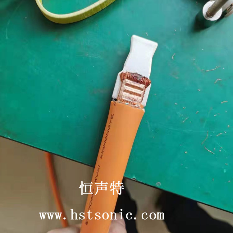 USB端子與銅線焊接超聲波點(diǎn)焊機(jī)焊接效果牢固,表面痕跡齒形均勻,無毛刺。