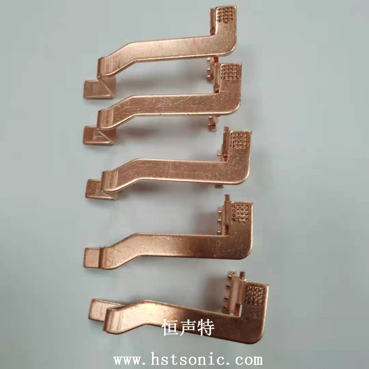 銅片與銅片超聲波金屬點(diǎn)焊機(jī)焊接表面呈規(guī)則痕跡(可定制),背面呈網(wǎng)紋狀(非平面),壓接形狀見(jiàn)下圖。