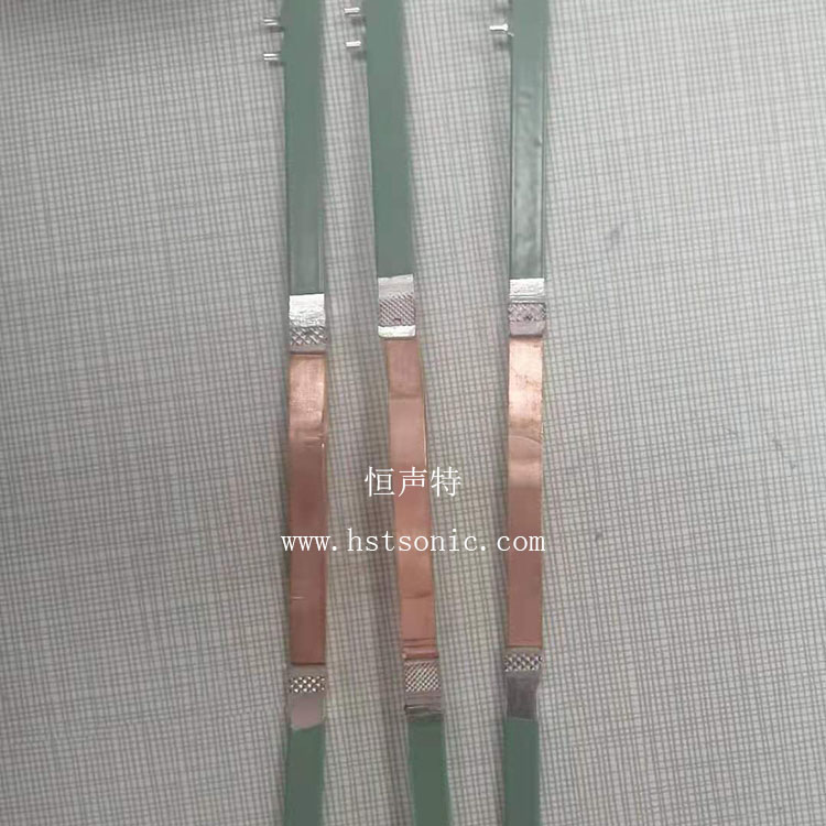 超聲波鋁片與銅片焊接超聲波點(diǎn)焊機(jī)操作簡(jiǎn)單,將金屬片放在下工裝處,啟動(dòng)按鈕,設(shè)備在設(shè)定好的參數(shù)下完成壓接。