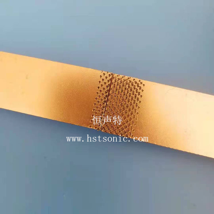 1.5mm紫銅銅片超聲波點(diǎn)焊機(jī)操作簡單,將紫銅片放在下工裝處,啟動按鈕,設(shè)備在設(shè)定好的參數(shù)下完成壓接。