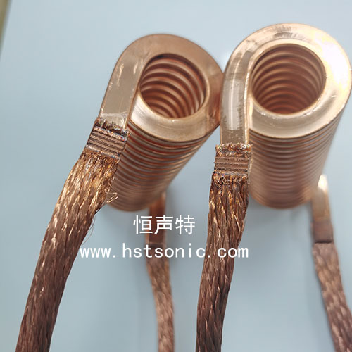 銅編織線與銅端子超聲波金屬點(diǎn)焊機(jī)焊接效果牢固,表面痕跡齒形均勻,無毛刺。