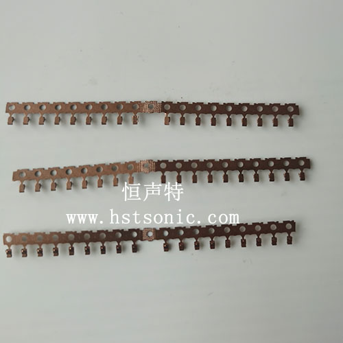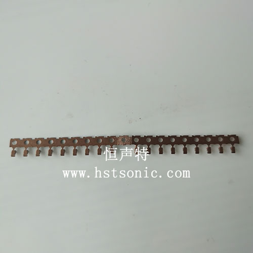 銅帶搭接超聲波金屬點(diǎn)焊機(jī)焊接表面呈規(guī)則痕跡(可定制),背面呈網(wǎng)紋狀(非平面),壓接形狀見(jiàn)下圖。
