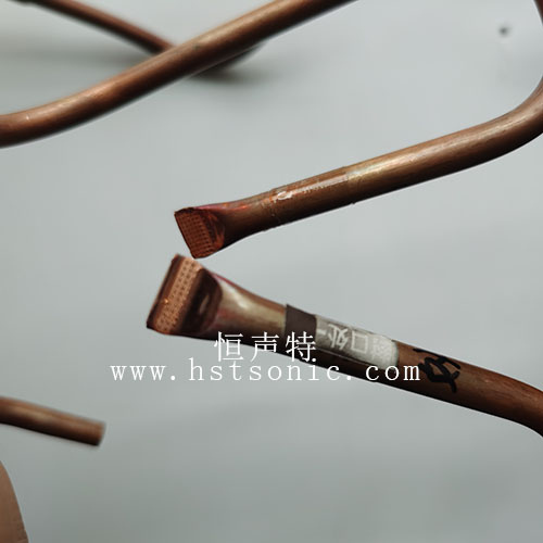 冰箱銅管封口超聲波封切效果(正面光滑,背面有齒痕)。